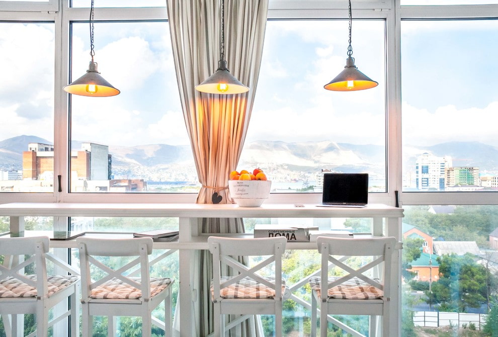 | منظر بانورامي من النافذة وإضاءة جيدة. | إذا كانت الشرفة بها زجاج بانورامي - سيكون الجو حارًا في الموسم الدافئ ، اعتني بالستائر على النوافذ. |