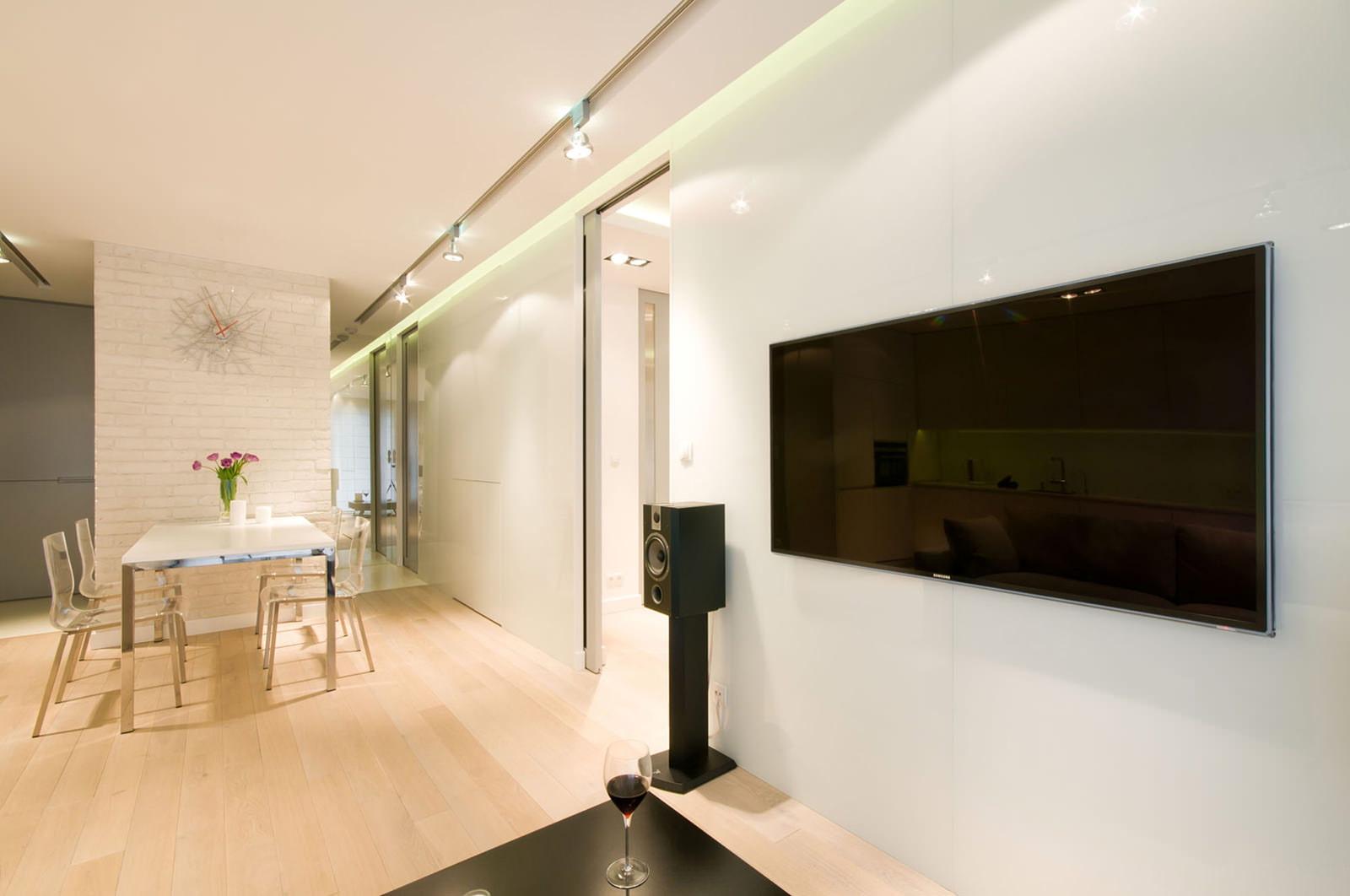 يمكن تعريف النمط العام للشقة على أنه شيوع: المساحة الحرة القصوى ، غلبة اللون الأبيض ، الحد الأدنى من الأثاث الذي يؤدي غالبًا عدة وظائف في وقت واحد.