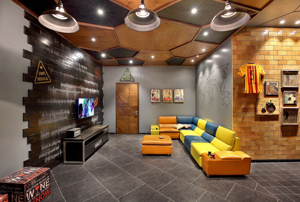The best place for tiles would be the bathroom and toilet. Juicy colors against the background of light wall decoration can overlap with decor and textiles. Another ceiling tile option is suitable for decorating a living room, study or hallway.These are PVC or foam tiles. The material is lightweight, it can have an unusual shape and texture.