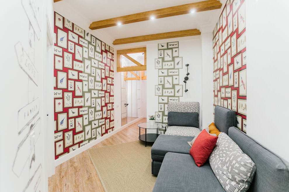 - One of the walls can be pasted over with wallpaper with a pattern or ornament, this technique will make a long room more proportional;