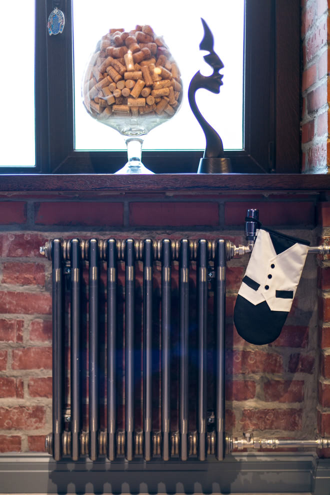 In the loft style, old batteries and pipes are most often not covered, they are left for display or exchanged for interesting design options.