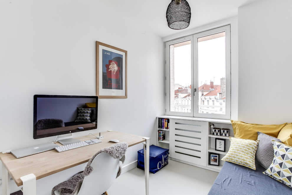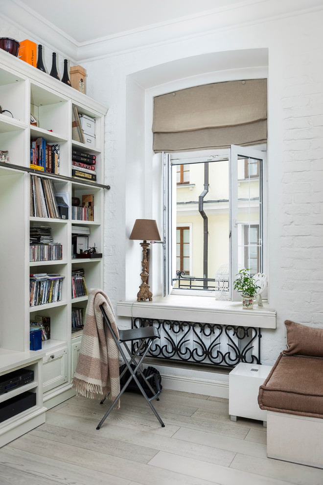 If the radiator is in a niche, then a wide window sill will help create a work area.