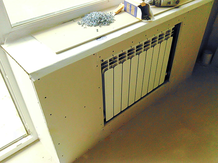 Separately, I would like to talk about how you can hide batteries using drywall. It should be noted right away that the material has its drawbacks, however, the drywall construction is still very popular for repairs.