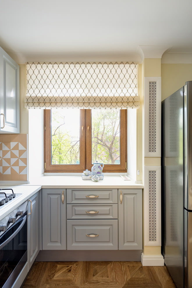 Do not forget about the most popular way to hide batteries - just curtain them with opaque or translucent curtains. Using this method, over time, you yourself will even forget that there are pipes and a radiator behind the curtains. The main thing is to choose curtains that will look harmonious and not show with all their appearance that there is something behind them.