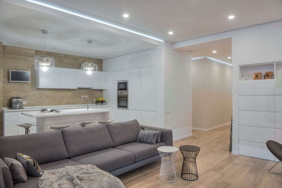 With built-in lighting fixtures, wall, ceiling or floor lighting, it is possible to emphasize certain areas in the room. In addition, well-positioned luminaires contribute to a visual change in the functional load and the size of the room.