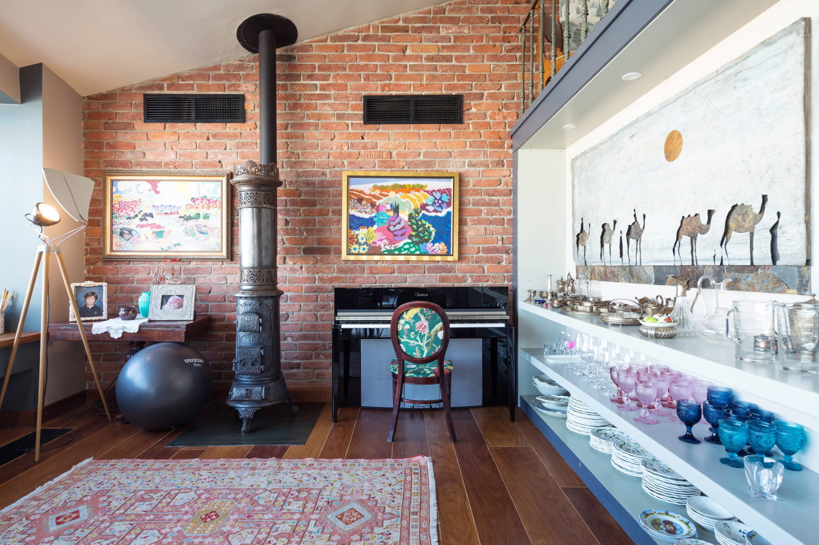 The main difference between style and others is individuality. It easily coexists with art and graffiti, vintage elements and modern technology. Collections are located on open shelves, the walls are decorated with various paintings and posters. But the most important thing is that each element has its own history or reflects the character of its owner.