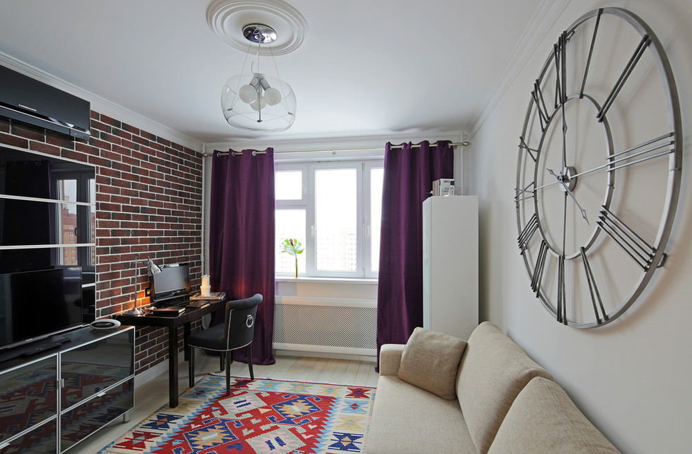 Brickwork is most often associated with the loft style. In a small apartment, it is permissible to replace natural material with imitation wallpaper. Red brick wallpaper is successfully combined with matte gray or white material. White brick looks harmoniously with light walls.