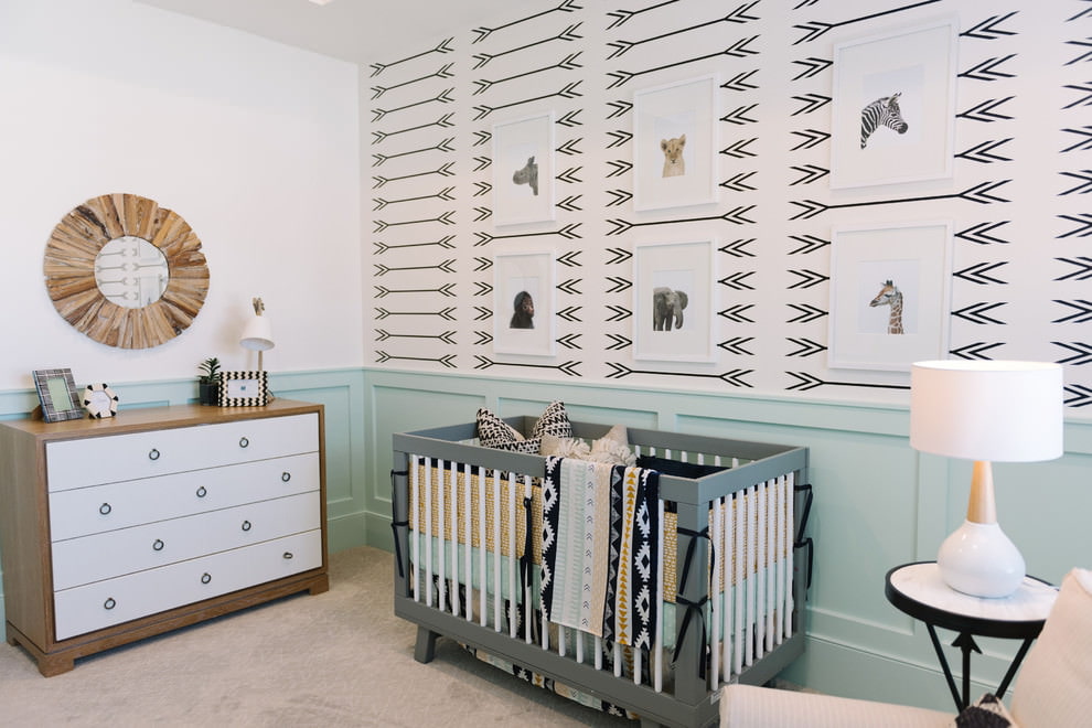 On the picture combination of three types of wallpaper in the interior of a children's room.