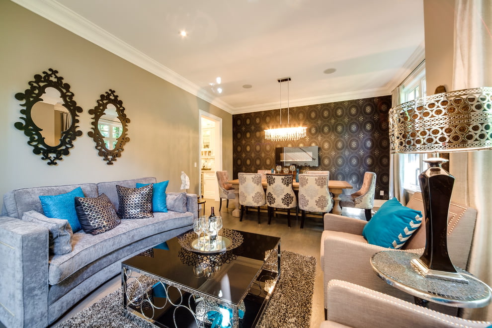- You should not place large furniture along a wall with large patterns; it is better to choose a plain background wallpaper.