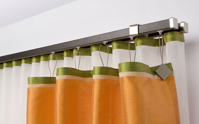 One of the most common types of curtain fastening to the cornice. It is a ring with hooks or clips that can hold very difficult types of fabric. Sometimes the rings are sewn to the fabric, and, if necessary, the curtains are removed with them.