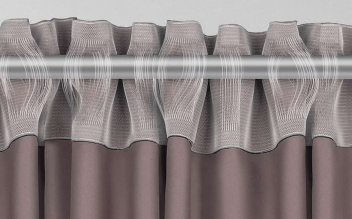 Equipped with several rows of hinges. Fastening curtains to windows with hinges is suitable for heavy curtains. Thanks to the built-in drawstring, they can be draped to the desired wave depth. Looks great in classic interiors.