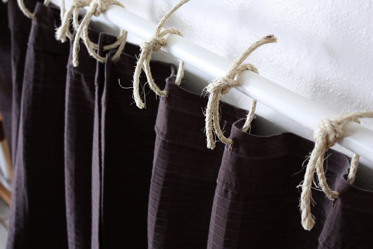 - The method of placing curtains should be appropriate for the interior of the room - on a cornice, strong rope, ceiling, Velcro, etc.