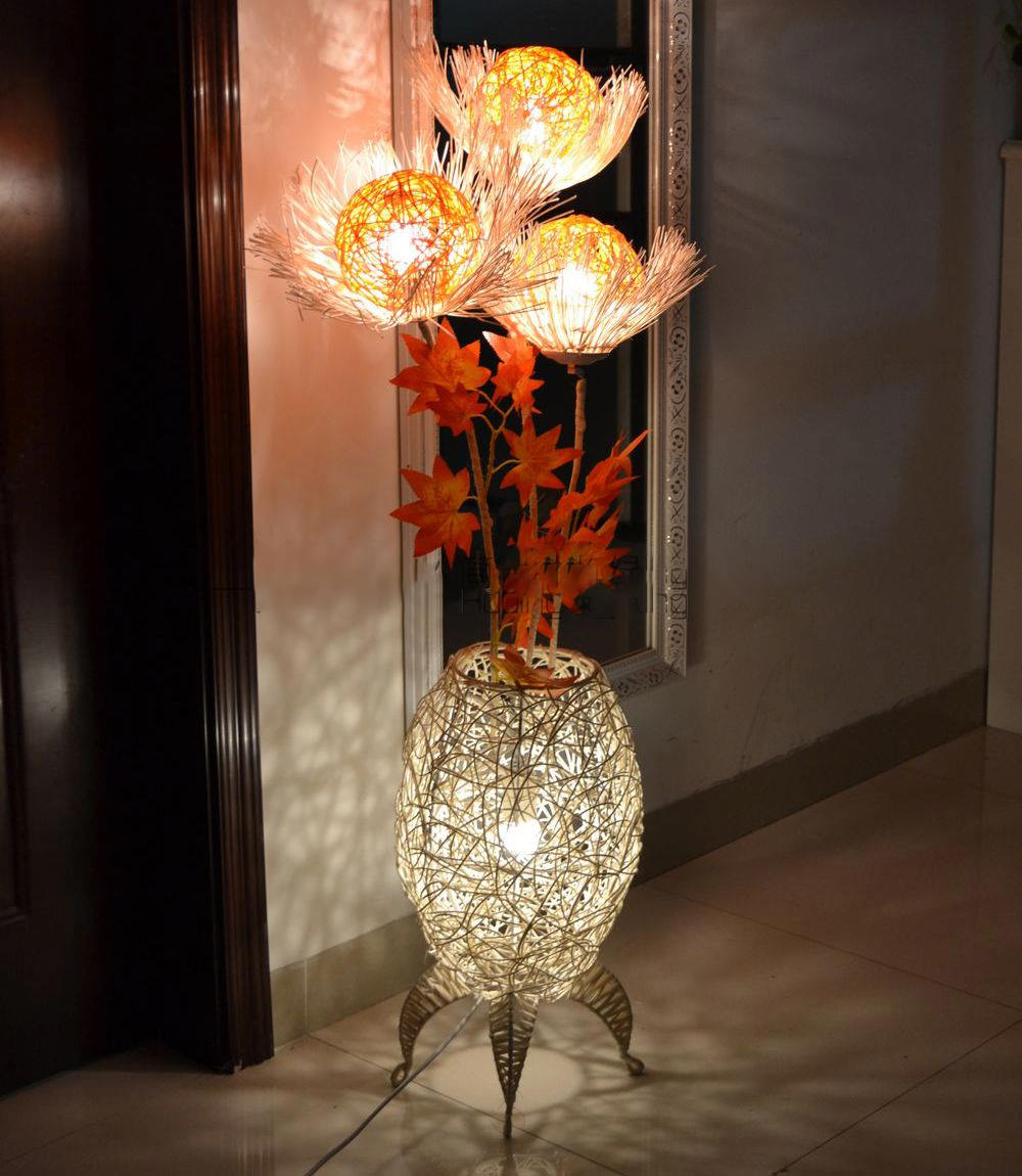 - Floor lamp vase. An elegant piece of furniture is not meant for fresh flowers. The vase base is complemented by halogen lamps in the form of plants or a classic lampshade.