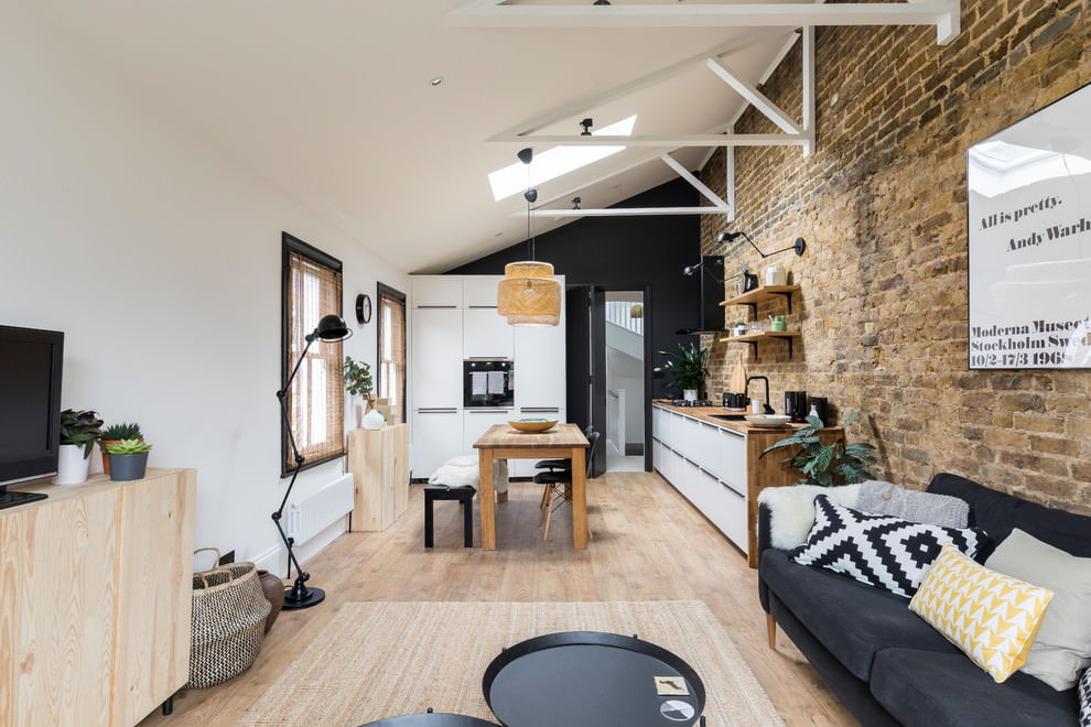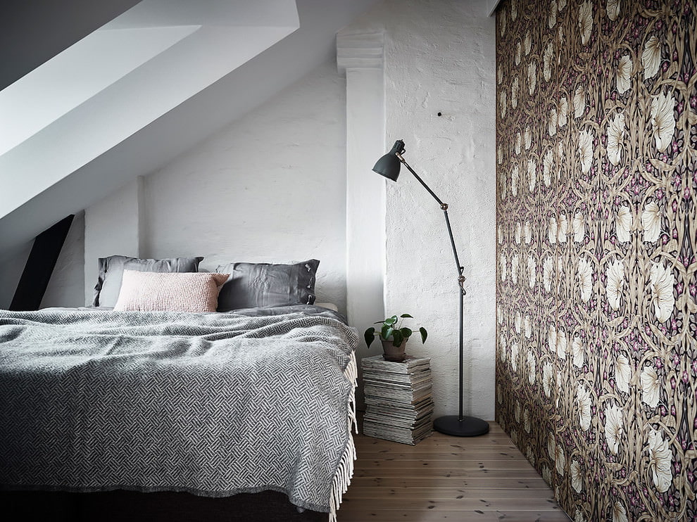 A loft floor lamp can be made of water pipes or have the shape of a spotlight. The fashionable style does not require unnecessary decorative details, the Edison lamp without a lampshade will fit into the interior.