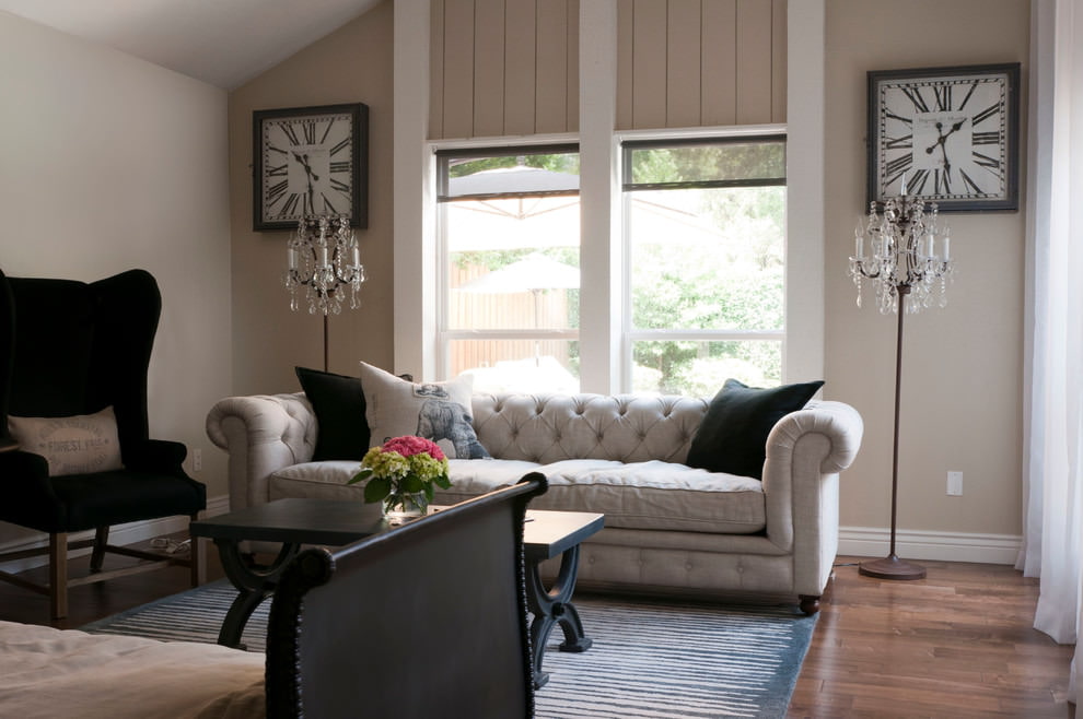 - Floor lamp with a clock. An unusual piece of furniture is placed in the line of sight of the eyes. The movement is part of the stem.