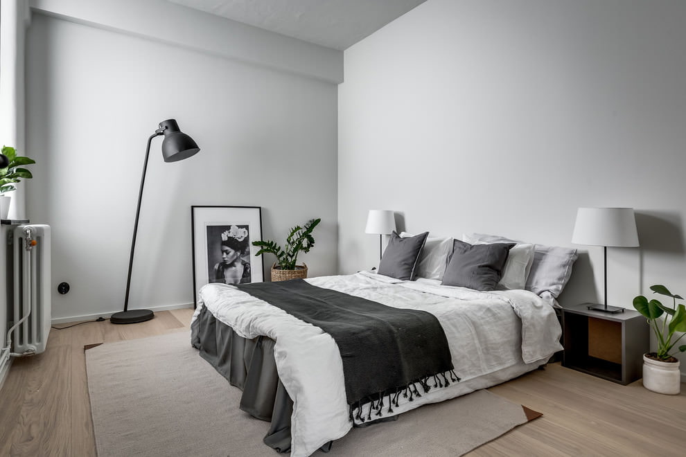In the interior of the bedroom, a floor lamp is placed near the bed or in the corner of the room. For convenience, you can choose a model with a remote control and light control. The light should be comfortable, soft, and conducive to relaxation. The floor lamp-night light looks harmoniously, which will illuminate the room with light light.