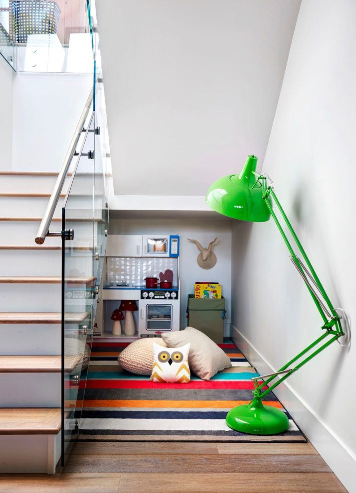 A floor lamp for a children's room can have a multi-colored lampshade with cute patterns. It is convenient to use a floor lamp-night light, it is better to place it in the corner of the room so that it does not interfere with sleep, and put a chair for reading books in the same place.
