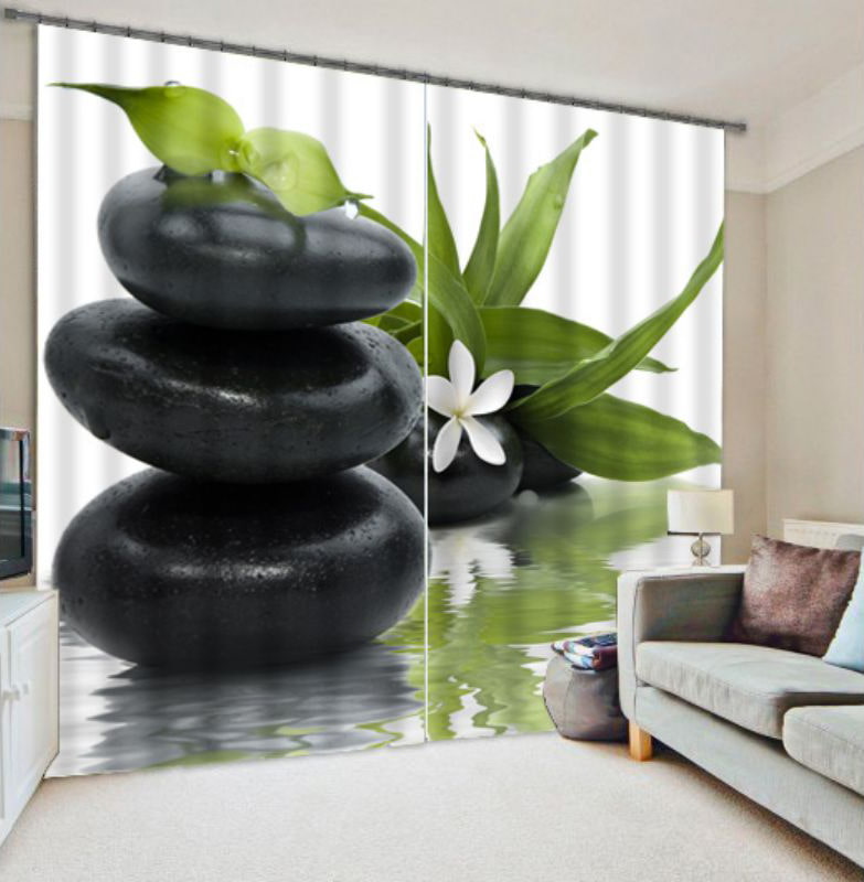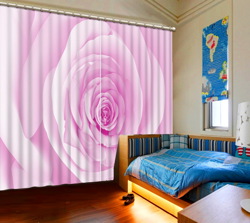 Canvases with a three-dimensional pattern are set to fit the window. When closed, they are collected on the shaft, representing a small roll. When unfolded, such 3D curtains create the illusion of beautiful views outside the window.