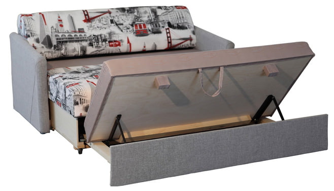 Of all types of transformation of sofas this option is the most convenient for sleeping, as it allows the use of spring blocks in the design, which is most beneficial for health and creates comfortable conditions for sleeping.