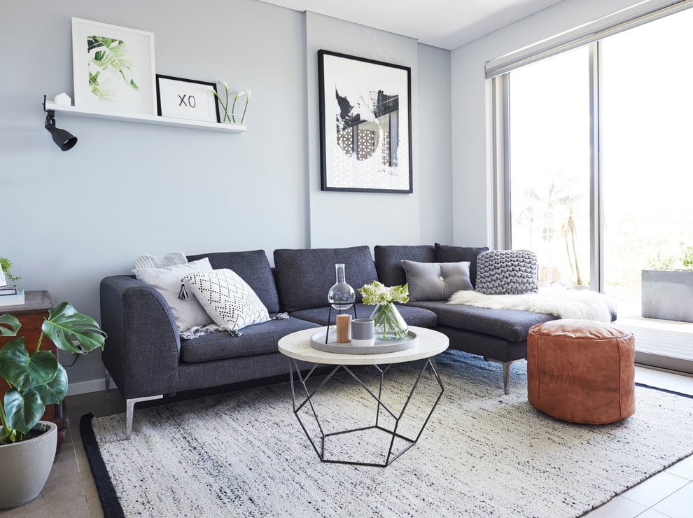 The photo shows a living room with a neutral background, which makes the furniture upholstery visually brighter.