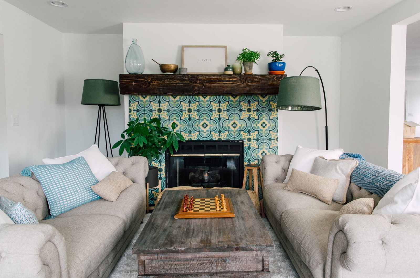 The photo shows a fusion-style living room, where things with history are united by one common background. Woody, terracotta and turquoise details look interesting on it.