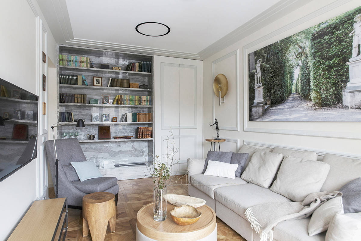 White walls are appropriate both in a spacious apartment and in a small studio, where there is almost no empty space left. It multiplies the light and visually blurs the boundaries between the walls and the ceiling.