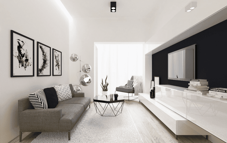 A combination of white and gray is considered to be a winning combination: this option never goes out of fashion, moreover, it is easy to dilute it with color spots.