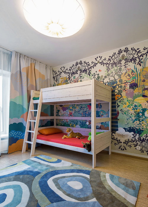 There are practically no rules for decorating a nursery or a teenager's room.Use decor for learning (geographical maps for a student, pictures with letters and numbers for a kid), entertainment (black and white coloring or slate surface) or decoration (3D wallpapers, photo wallpapers with characters from your favorite fairy tales and cartoons).