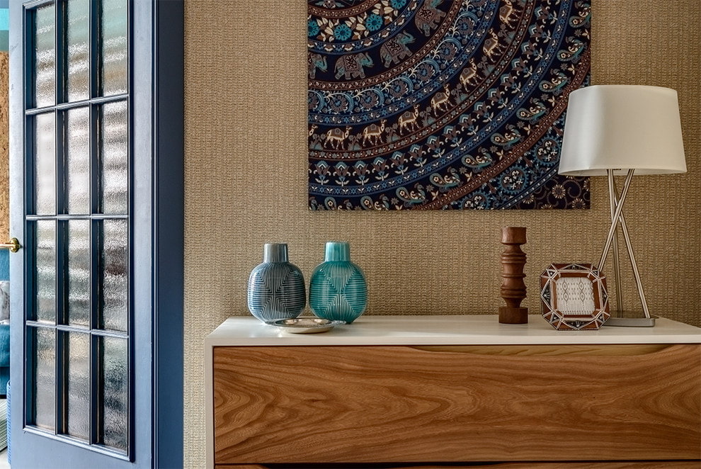 Geometric patterns can be in the form of an ornament or a textured pattern. Geometric shapes will decorate modern, Scandinavian, minimalistic or high-tech designs. Patterns can be presented in one form or another on all types of vandal-resistant wallpapers. The interior can be combined with plain coatings or liquid wallpaper.