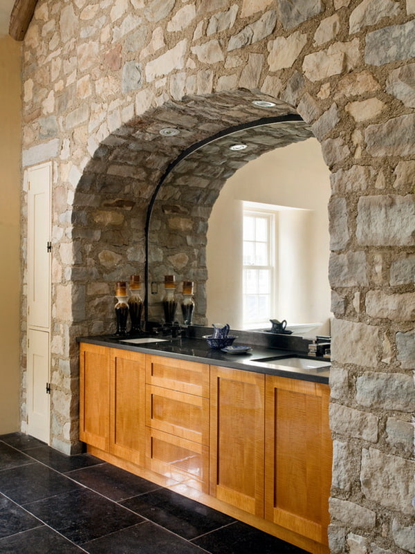 Natural (wild) stone is rarely used for indoor surfaces due to its high cost, significant weight and complexity of processing (hewn slate or travertine is required). However, for outdoor street work, it is the best choice. The stone-lined arch looks great, and the material itself has the highest strength and durability - when using a high-quality solution, it can last for many decades.