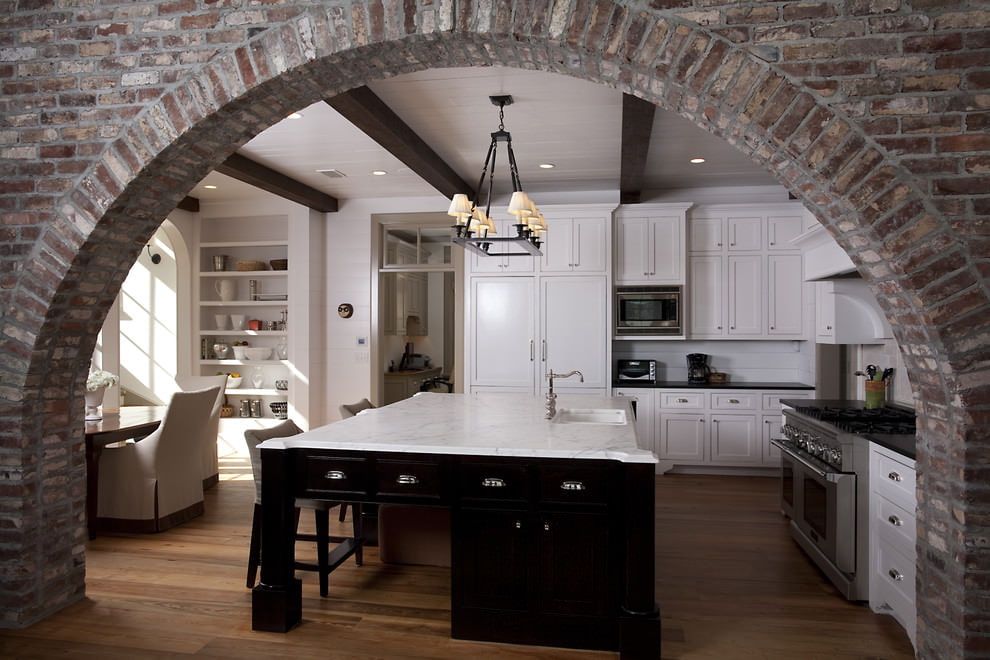 This is an important nuance, since the arch is an overhanging object. A dark shade will visually constrain and reduce the space of the room.