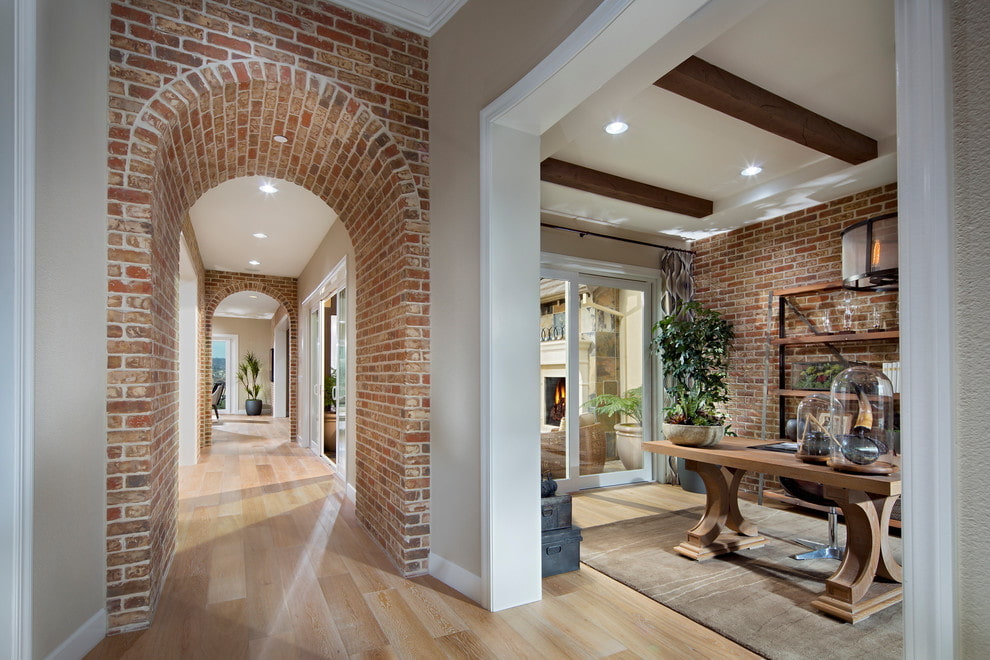 If the goal when decorating an arch is not a stone texture, but an imitation of a brick, then the choice is quite wide. Flat decor is sold in every hardware store, is not expensive and weighs little (the thickness of the bricks is 5-20 mm). The level of masonry is so simple that even a non-professional can handle it. As a result, the opening will be transformed, and a piece of ultra-fashionable loft style will appear in the room.