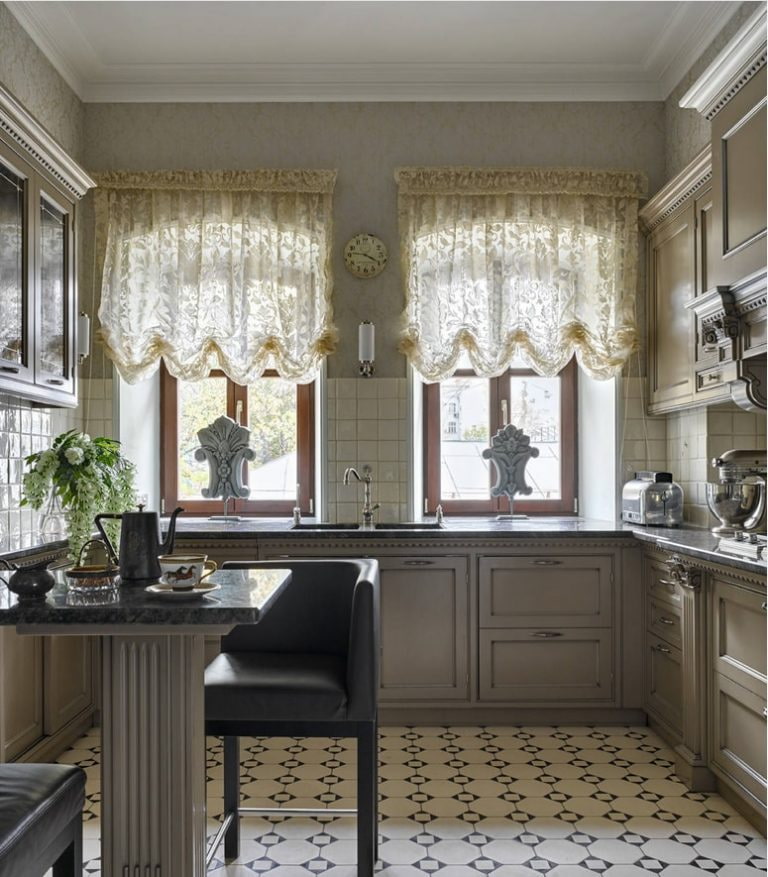 In this style, Austrian curtains are sometimes complemented with a set with a classic lambrequin. Austrian women with free hanging edges will look refined and sophisticated.