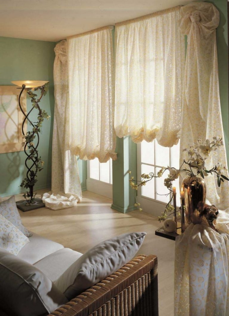 The ties are both a functional and a decorative element.They are tied with an original knot, bow or intertwined. Such curtains create an atmosphere of softness, warmth and comfort in the room.