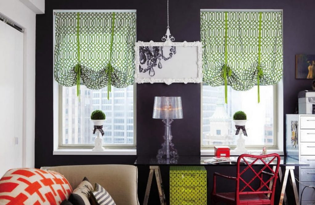 They will give a certain solemnity to the entire workroom. These curtains are sometimes combined with long curtains to create a complete window decor.