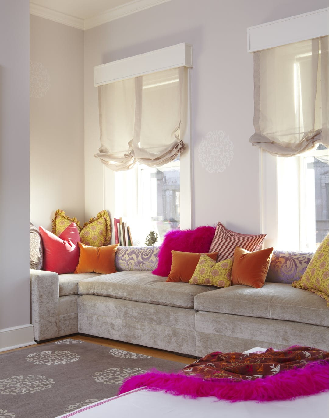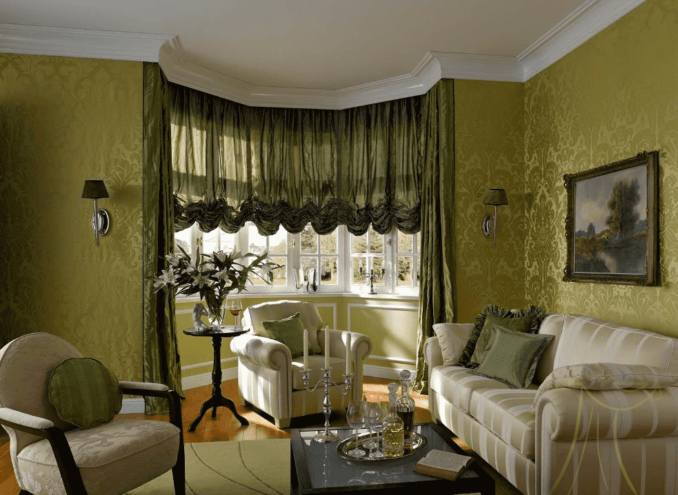 If the interior lacks a bright accent, then Austrian curtains can give a luxurious look to any living room.