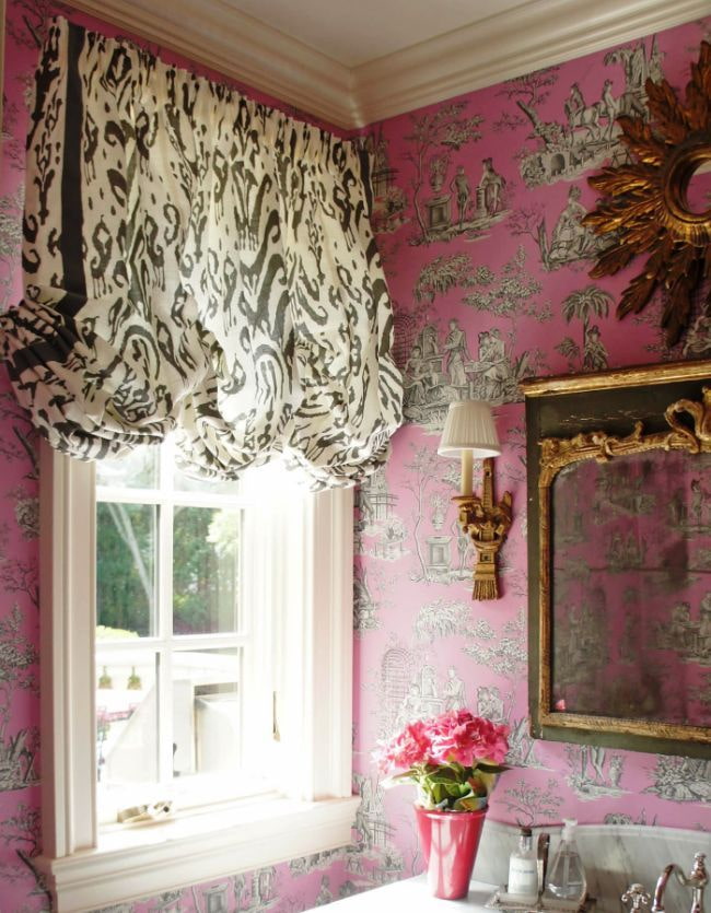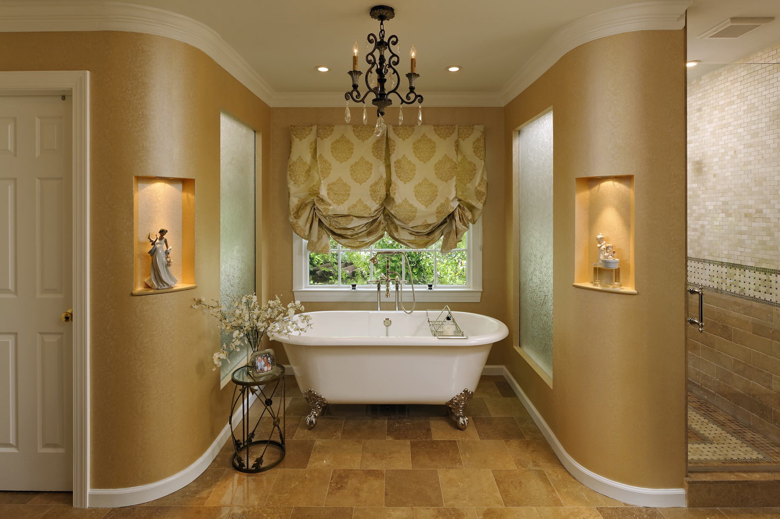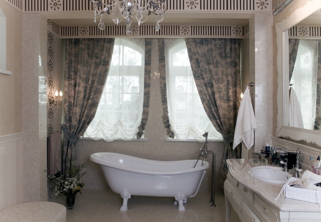 In the photo there are Austrian linen curtains in the interior of the bathroom.