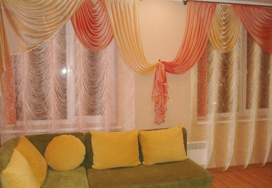 - Especially suitable for decorating arched window openings. Such an abundant amount of folds looks harmoniously under a single arc.