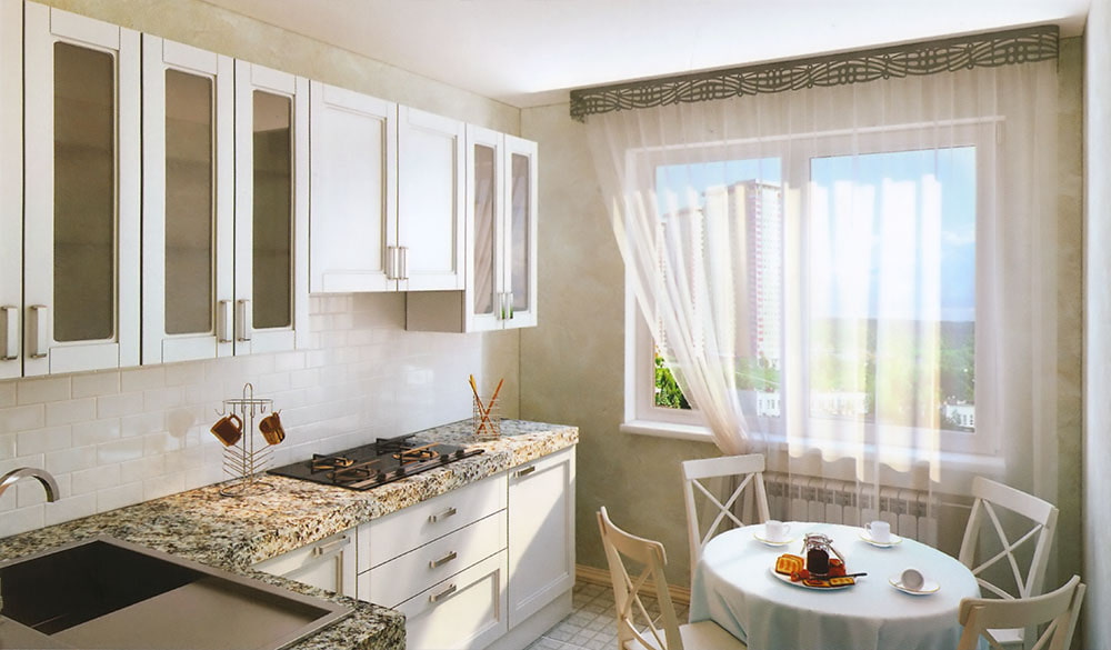 - For small kitchens, ribbon openwork lambrequins in combination with light curtains are perfect.