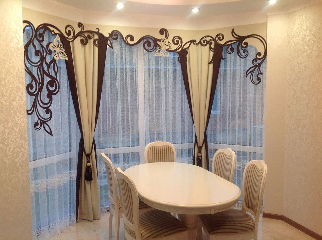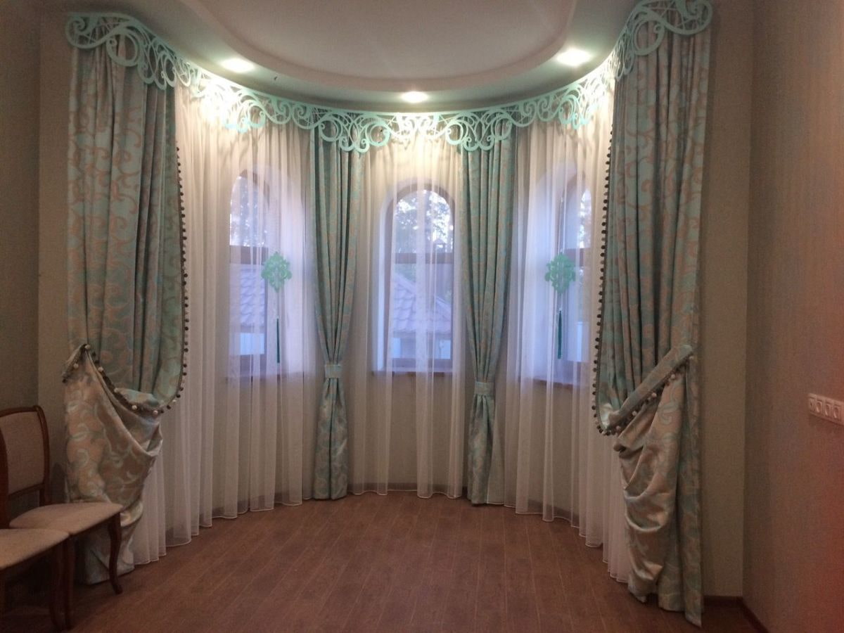 Lambrequin in a special way emphasizes the shape of the bay windows and creates a holistic composition.