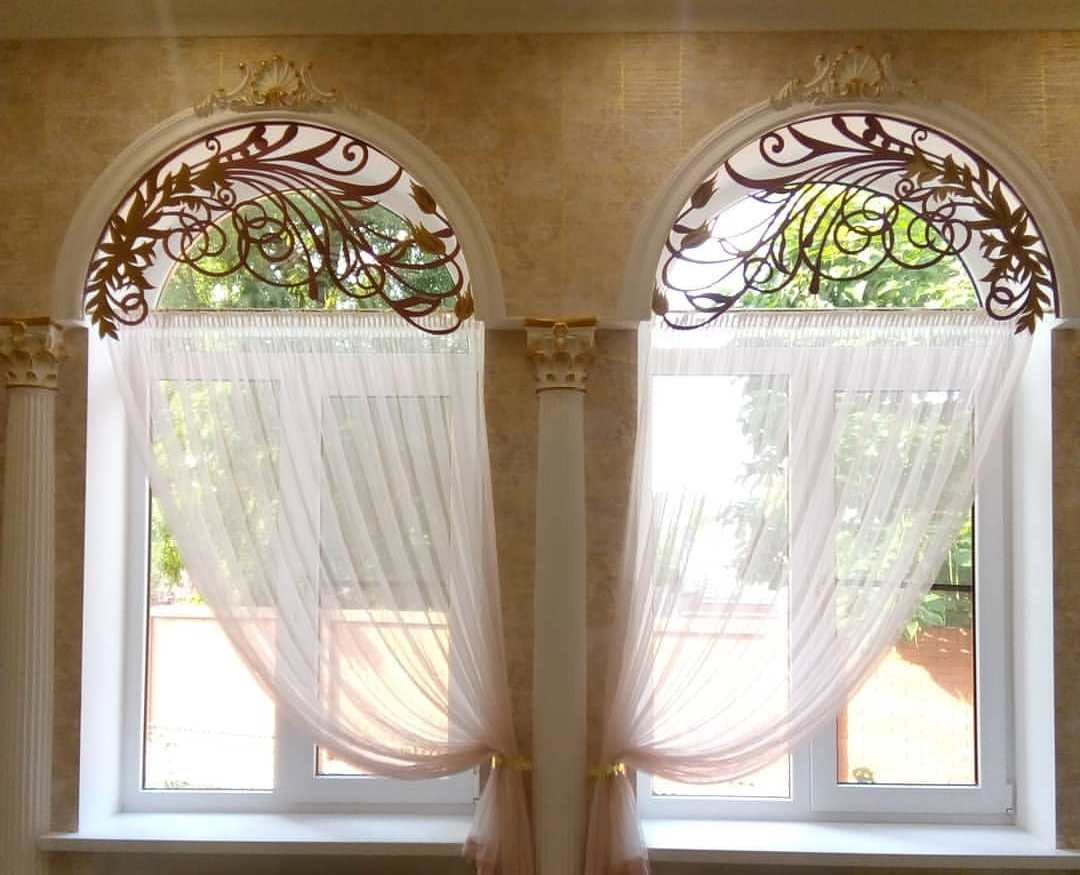 On an arched window, such designs look quite impressive and perfectly highlight the advantages of the window.