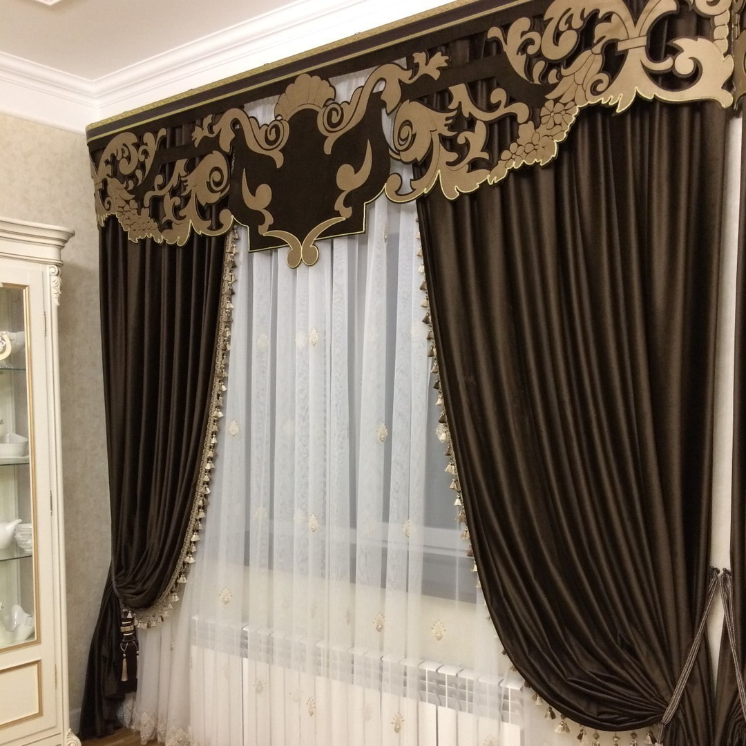 The window opening in the design of exquisite openwork lambrequins looks much more interesting, its appearance radically changes the style of any interior and adds elegance and fashionableness to it.