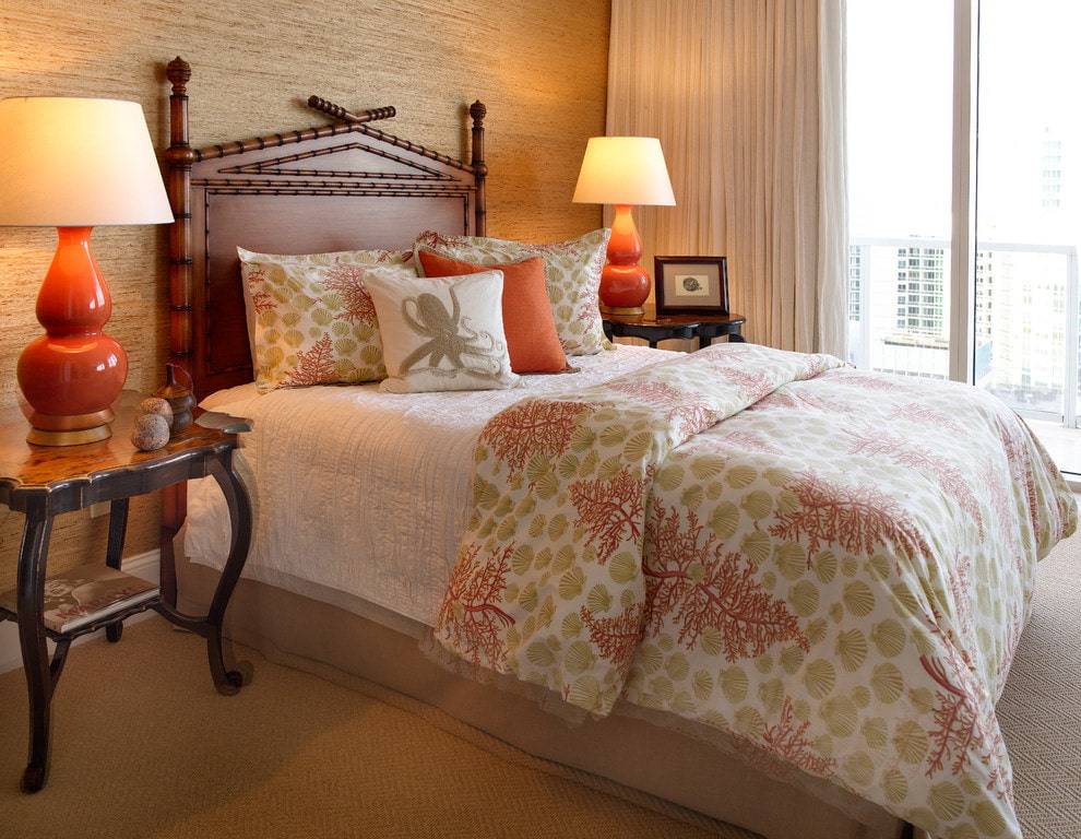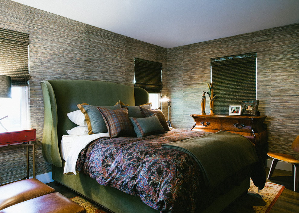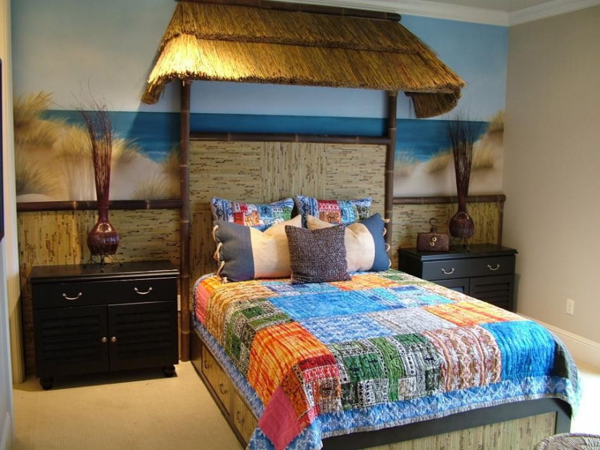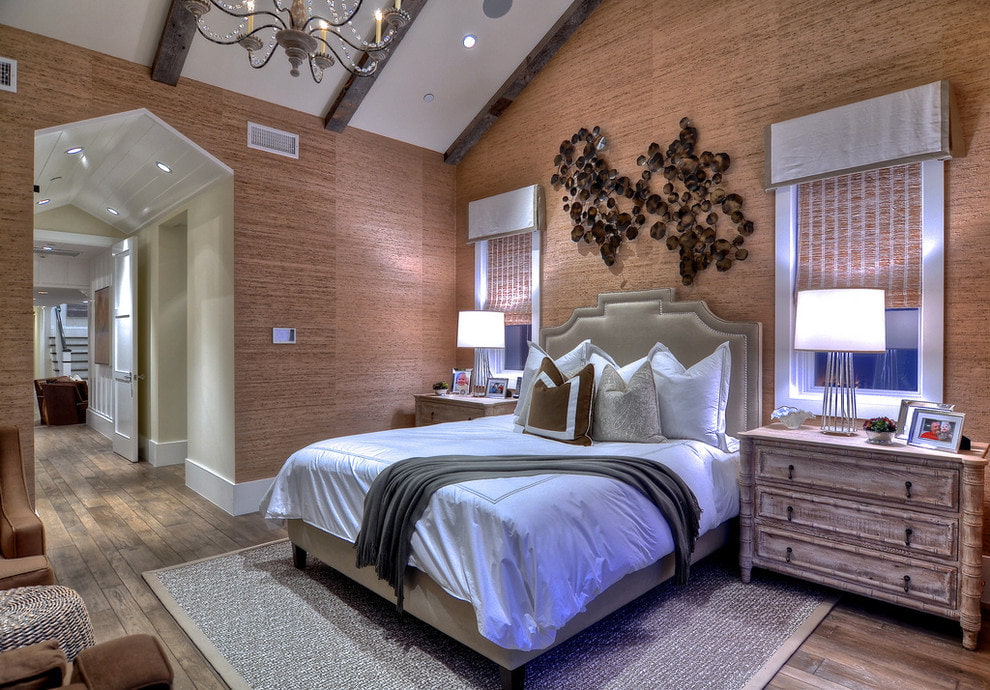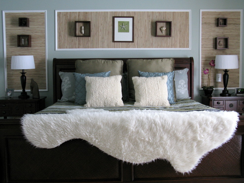 Bamboo canvases will give the bedroom the coziness and warmth of a tropical house. They can be combined with monochromatic wall decoration, in which case the design will be calmer, or they can completely decorate the room with them.