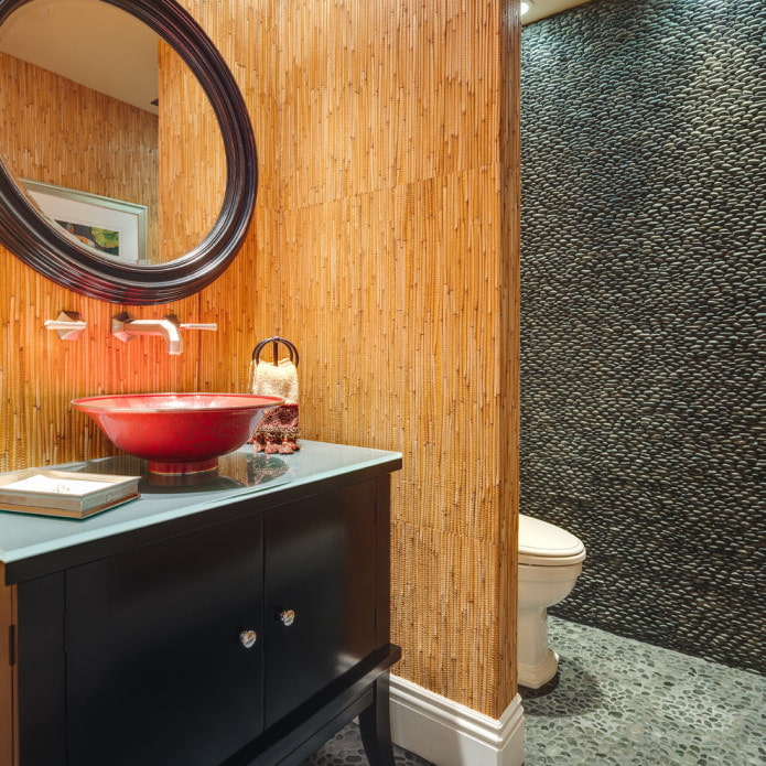 Bamboo trim may well be in the toilet, the material interacts well with moisture and does not distort over time.