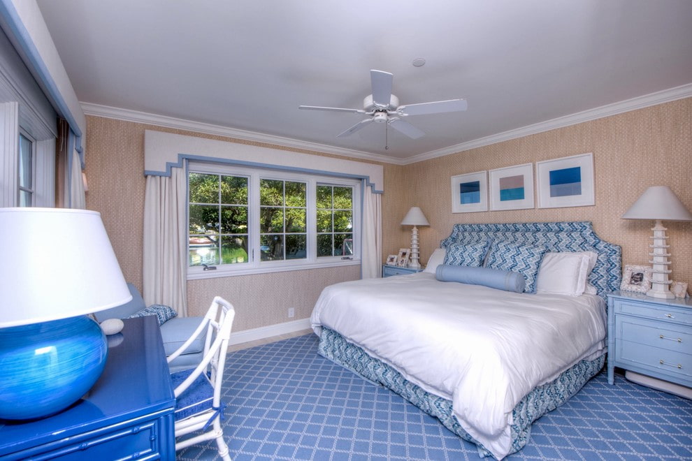 Blue and white striped textiles are the traditional way of decorating a room in this style. Thanks to this decor, the room is filled with a fresh sea breeze, an atmosphere of summer holidays and romantic travel.