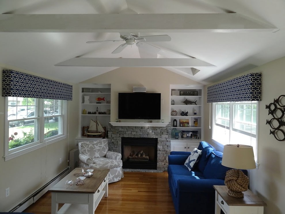 Bandeau complemented by Roman shades looks very impressive. Such a laconic combination will perfectly fit into any interior style.