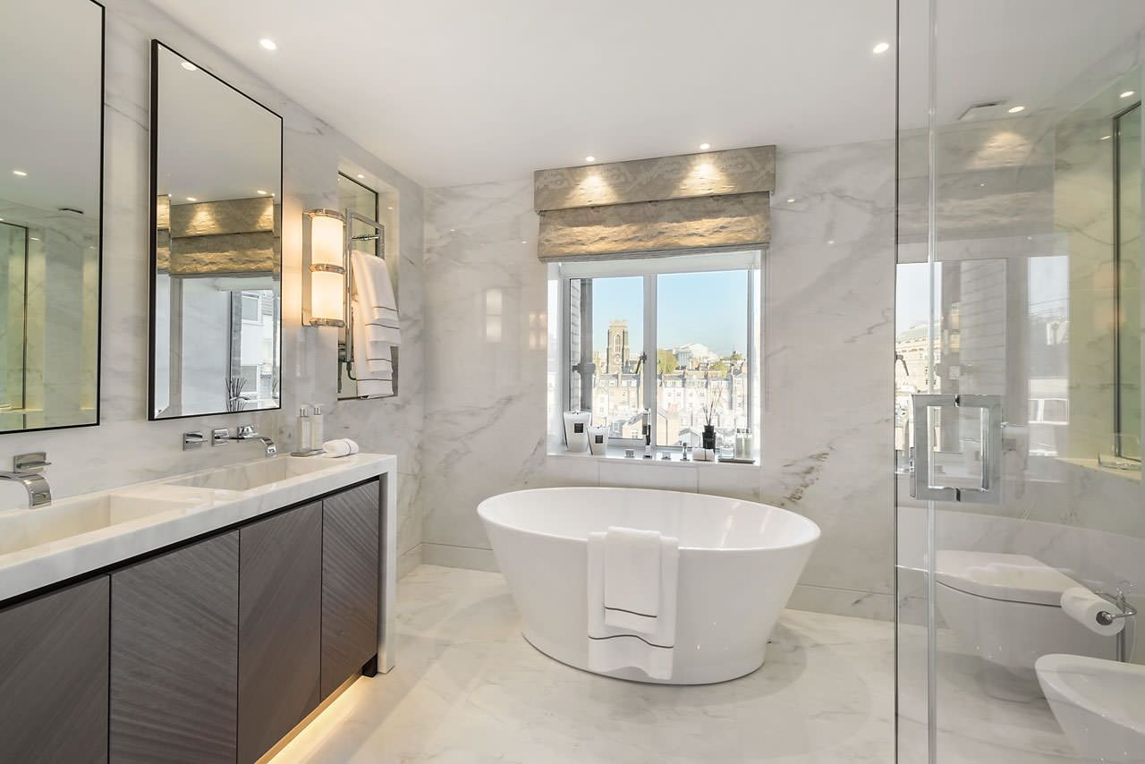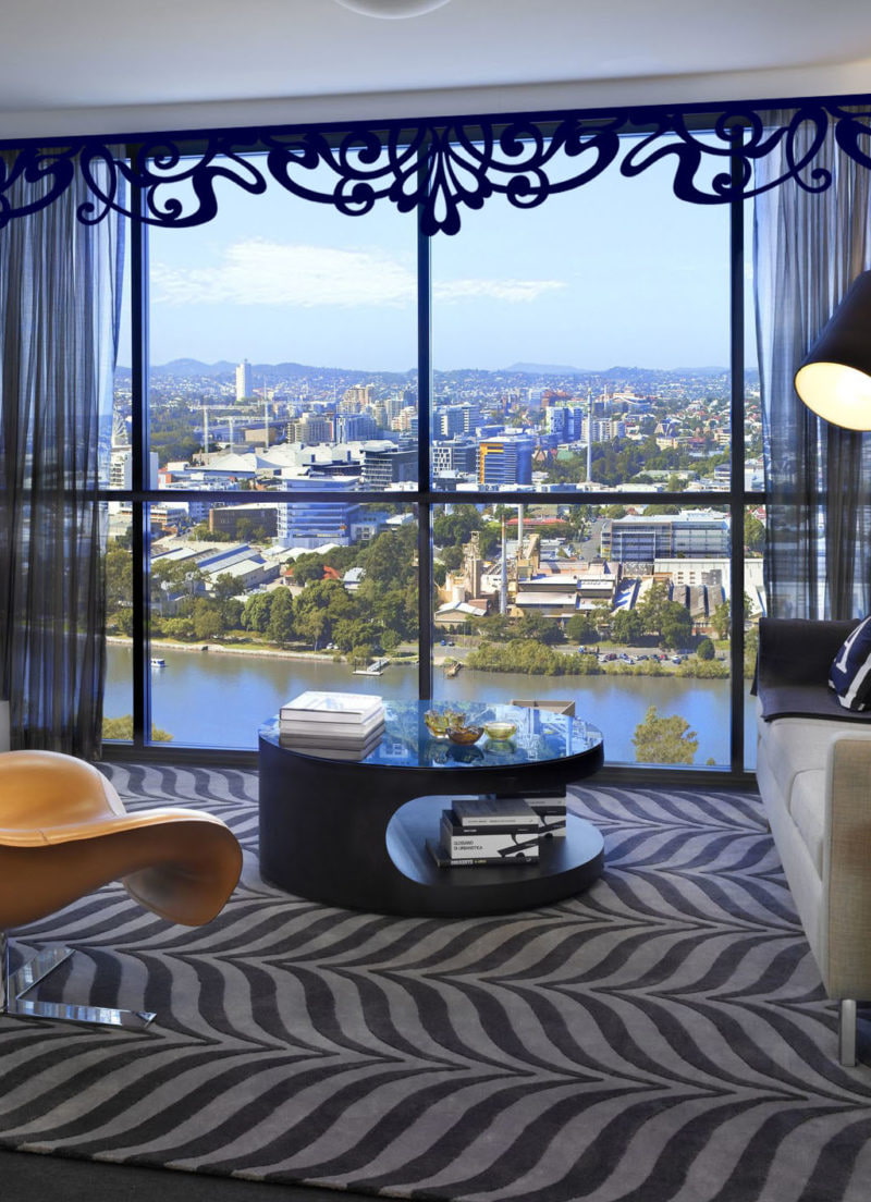 Austere, practical designs made from inexpensive textiles emphasize the sophistication and luxury of the room.