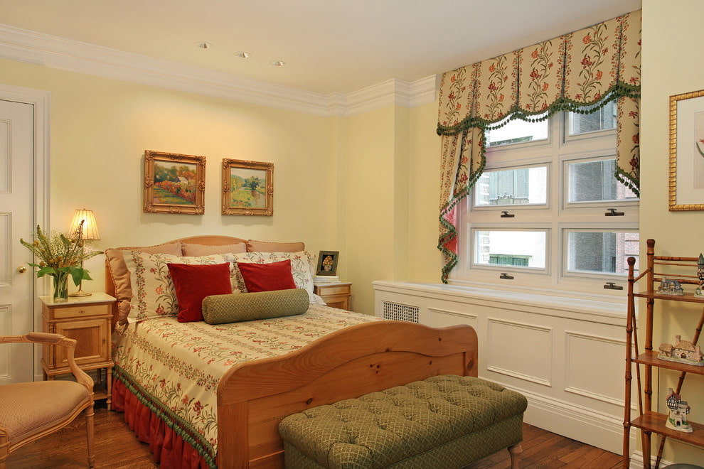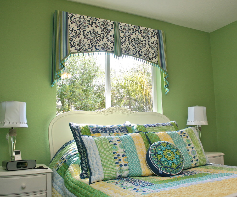 In the interior of the bedroom, the bandeau, complemented by curtains, looks luxurious and elegant. This method of textile decoration will give the room individuality and a finished look, and a well-chosen fabric will avoid unnecessary pretentiousness in the room.