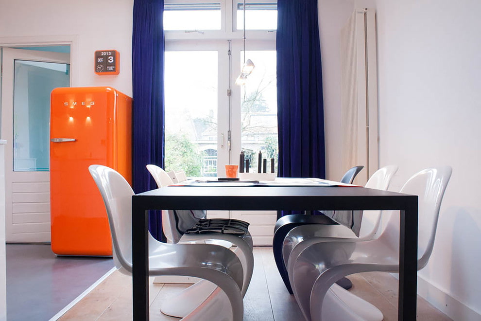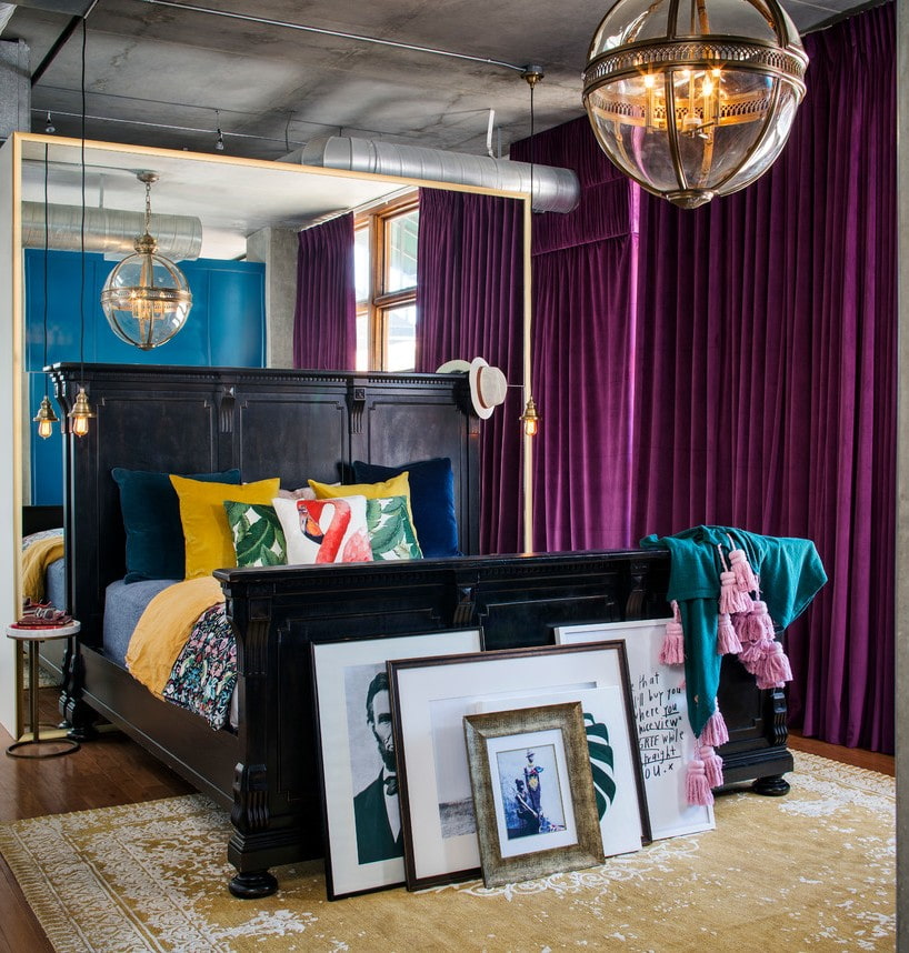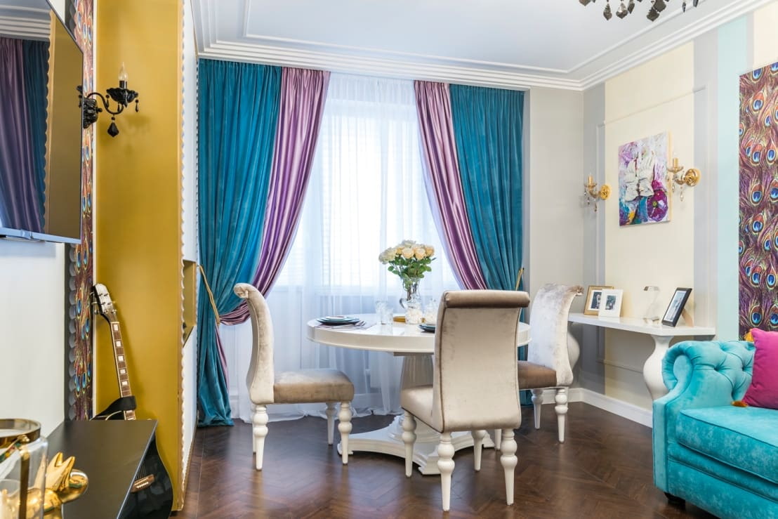 Transforms the room beyond recognition and adds positive and freshness to it. Pink or purple velvet curtains will create the most original curtain combinations.