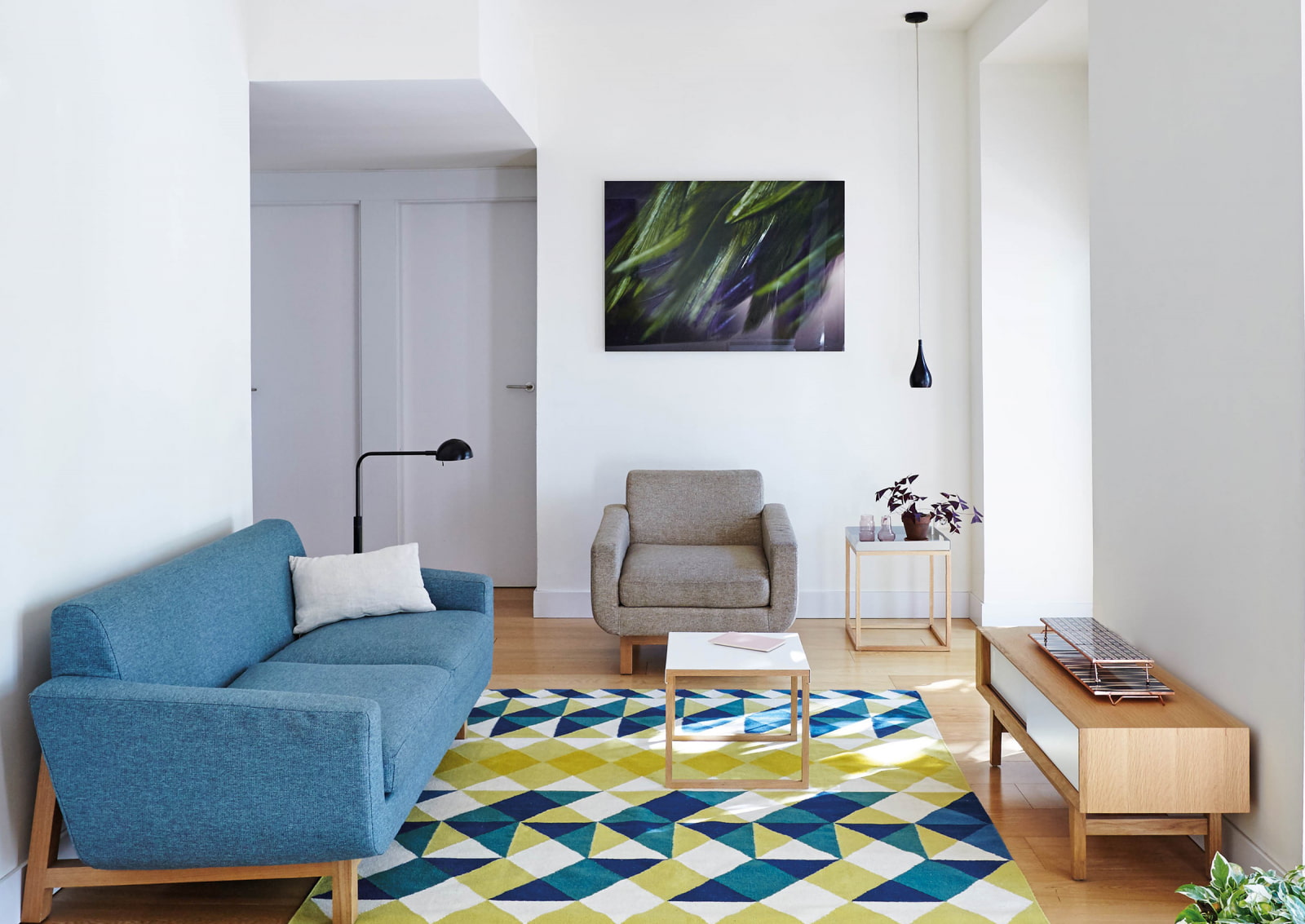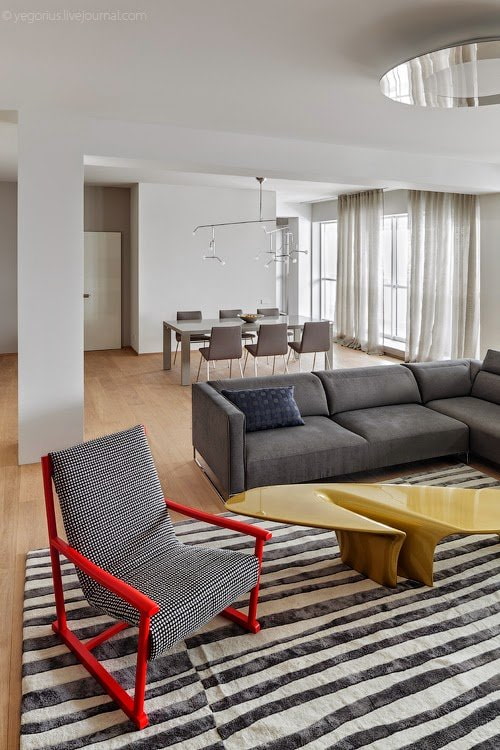 By the way, geometric carpets are an integral element of the classic trend. The bright print on them perfectly complements the neutral decoration of the room.